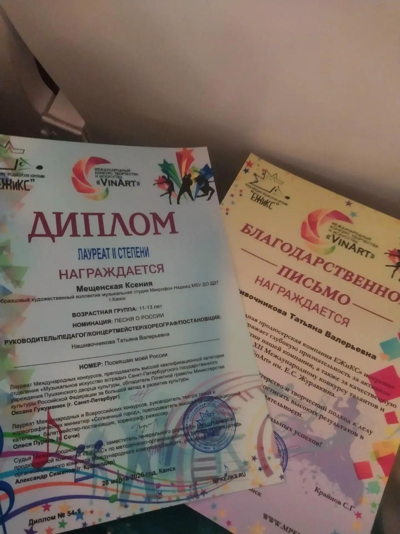 Дом детского творчества от всей души поздравляет Ксению и её педагога Татьяну Валерьевну Нашивочникову с достойным результатом и желает новых побед
